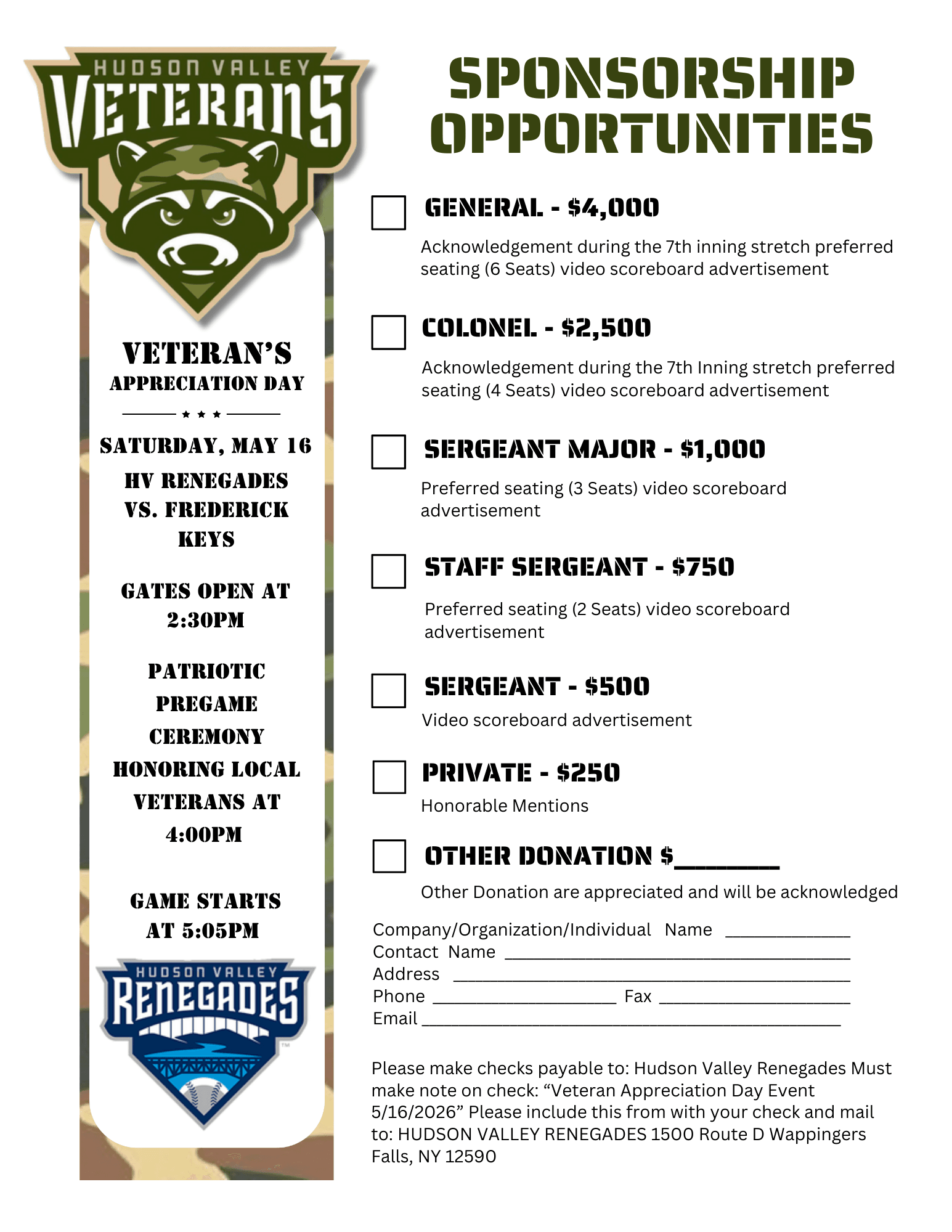 Hudson Valley Renegades Veteran Appreciation Day